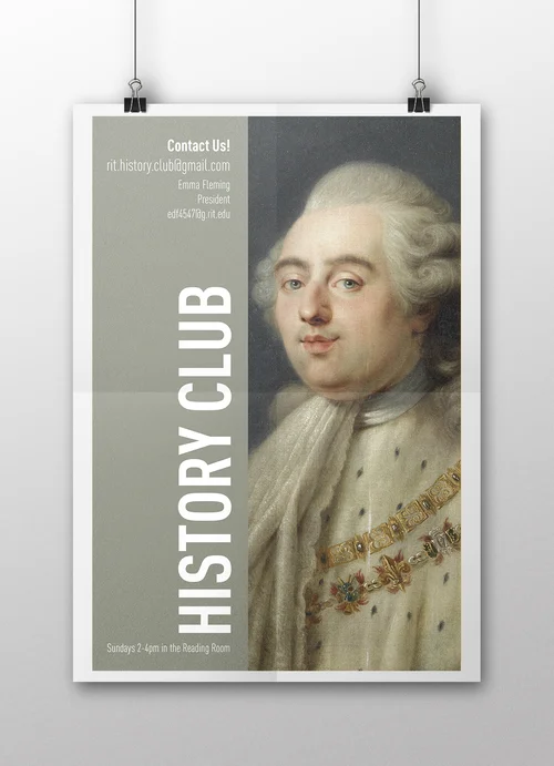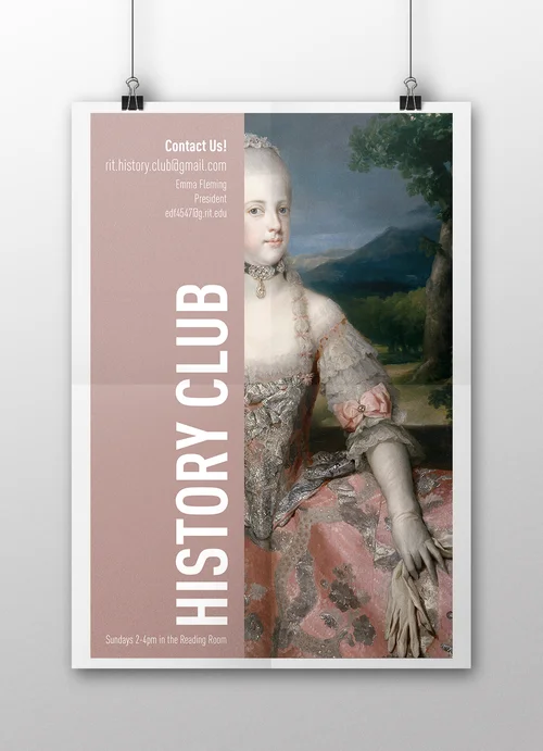 A series of posters designed for the RIT History Club that I founded in 2015. I wanted to create a series of posters that would catch people's eyes among the hundreds of posters on the walls of the student union at RIT. I chose bold, modern text and portraits full of color and mystery of lesser known historical figures. They are meant to intrigue the viewer and leave them wanting to know more about the subjects.